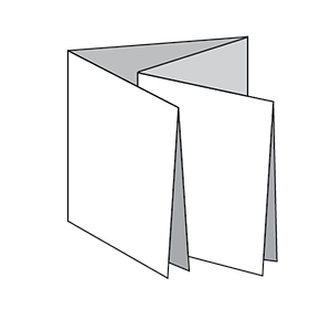 A combined fold: the paper is first folded in half (Half Fold), then folded into three parts (Tri Fold) along the folded edge. This balances compactness and content capacity, suitable for multi-page leaflets like restaurant menus, educational brochures, and medical guides.